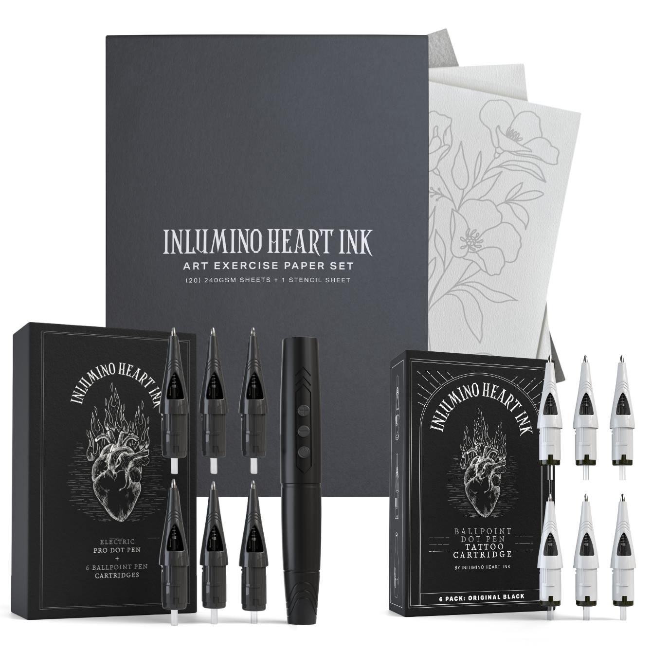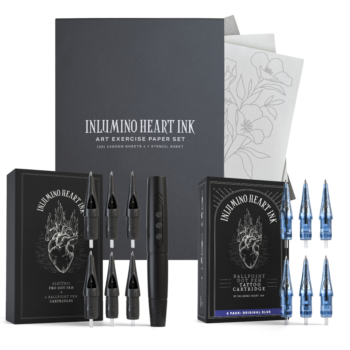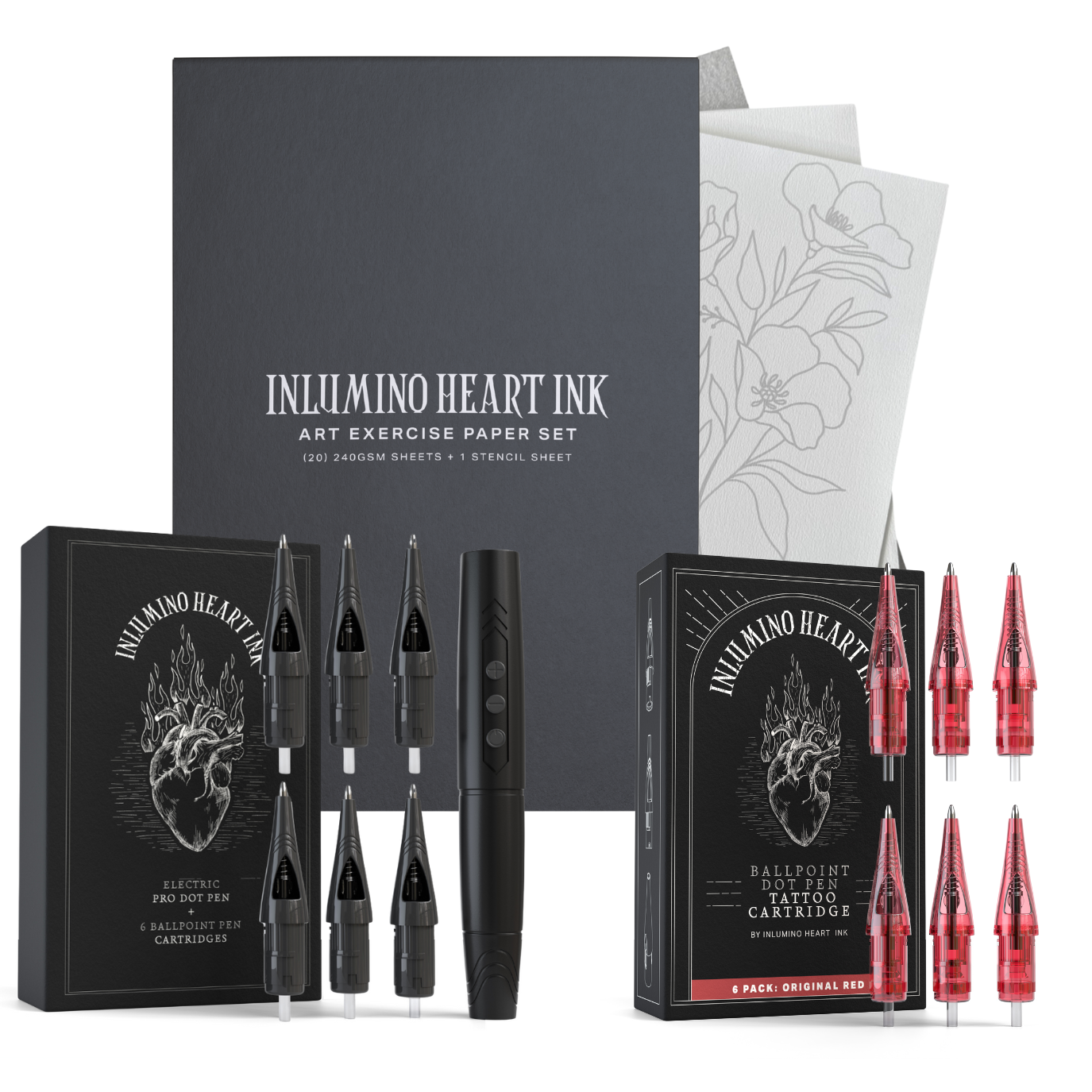 The Essential's Set includes our core products in one kit to kickstart your tattoo journey. In this one-stop-set you have everything you need to beginning your carefree, no clean-up creative process. A $169.99 value for $149.99. Included in this bundle is our: